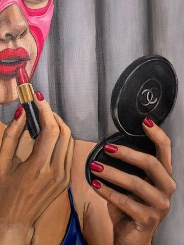 Before Battle is an original acrylic on canvas painting by artist Lindsay Ponce from her new collection, ‘Lucha & Love’, a symbolic exploration of romance, risk, and resilience represented by lovers in luchador masks.